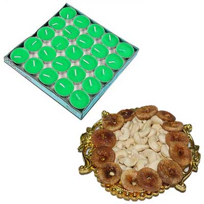 Fancy Lotus Brass Diyas (Set of 2)(voilet),250gms of kaju kathili |