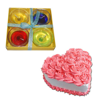 Chocolate cake - 1kg, Glass Gel candles - 6 pcs |