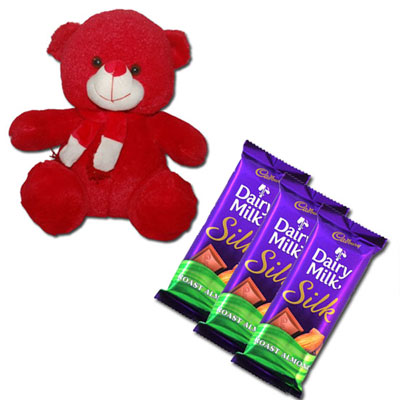 Name : Red Colour Teddy BST-13003-001, Dairy Milk Silk Roast Almond - 3pcs