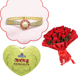 Lock Dairy -002 + 25 Red Roses flower bunch wrapped in a decorative paper NOTE: Same day Delivery for Hyderabad and ...
