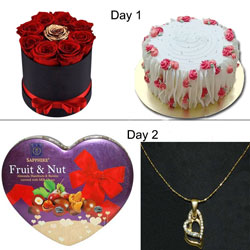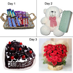 Multi day Hamper Day 1: Bunch of 15 Red Roses along with Ferrero Rocher Chocolate Box (16 Pieces) Day 2 : 25 Red Rose...