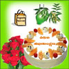 1kg round shape chocolate cake + 500gms of kaju assorted sweets + Special Ugadi Hamper (1 Big Green Mango + Cheruku Mukkalu ...