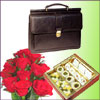 Business Bag + Specially Packed 1Kg Assorted Sweets + 12 Red Roses bunch