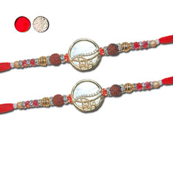 AMERICAN DIAMOND (AD) RAKHIS -AD 4180 A- 024 (2 Rakhis) + Ram Ram Designer sticker RT-2180 A + Free Roli and Chawal ...