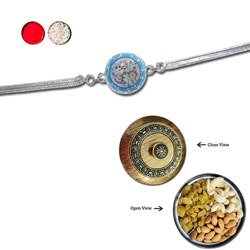 Silver Coated Rakhi - SIL-6040 A (Single Rakhi) + Magna Junior Dry Fruit Box - Code DFB1000 (Magna Junior Dry Fruit Box - Co...