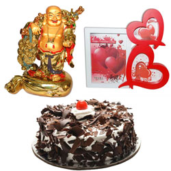 Laughing Buddha - LB-901 Size: 24cm*17cm + Yummy delicious round shape Black Forest cake - 1kg + Love Photo Frame - code...