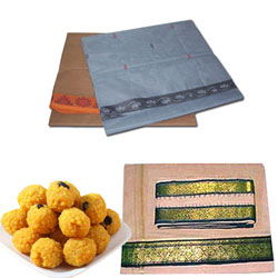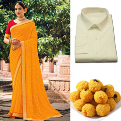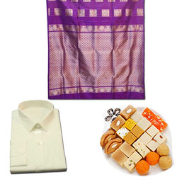 Fancy Silk Saree Seymore Chunriya -11293 + Pure Cotton Shirt - CW20009-, Size: 42 + Laddu sweet - 500gms NOTE: Same...