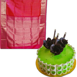 Exclusive Venkatagiri Pattu Saree - HSNM-1 + Delicious Pista Flavor Cake - 1kg NOTE: Same day Delivery for Hyderabad ...