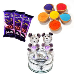 Crystal Teddy Decorative Piece -003 Size :11cm*9cm + Cadburys Bubbly chocolates - 3 bars + 6 colors of Gulal packets NO...