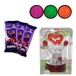 Crystal Valentine stand with Lighting - 1208-002 + Cadburys bubbly chocolates - 3 bars + 3 colors of Gulal packets NOTE...