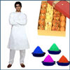 Mens cotton Kurta & Payjama +500gms of assorted sweets + 4 colors of Gulal Packets.