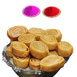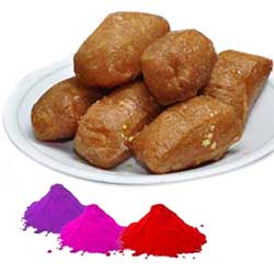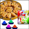 500gms of Kajiikayalu sweet + 4 colors of Gulal packets + free greeting card