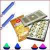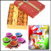 500gms assorted sweets + 4 colors of Gulal packets + free greeting card