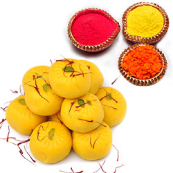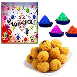 500gms Laddu sweet + 4 colors of Gulal packets + free greeting card