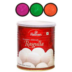 Rasgulla (haldirams) - 1 kgs + 3 colors of Gulal packets