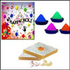 500gms of Chandrakala sweet + 6 colors of Gulal packets + free greeting card