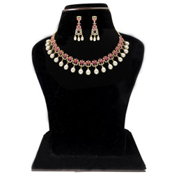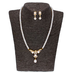Lipika Pearl Set Product code:JPAPL-23-28 Pearl Shape:Oval Pearl Size:4-5 MM Pearl color:White Pearl quality:AA Pearl ...