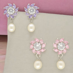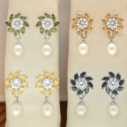 Product Code: JDEC-0407WCS Stone: freshwater pearls, cubic zirconia Shape: button, oval Size: 4-5 MM Colour: Peach, Whit...