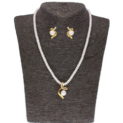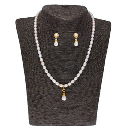 Janya Pearl Set Product code:JPAPL-23-26 Pearl Shape:Oval Pearl Size:4-5 MM Pearl color:White Pearl quality:AA Pearl t...