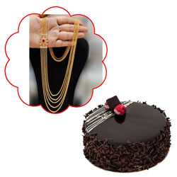 1gram Chandra Haram with Locket + Yummy Delicious Round shape Chocolate cake -1kg NOTE: Same day Delivery for Hyderabad...