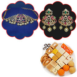 1grm Fancy American Diamond (Ear tops) - MGR -1306 + American Diamond Armlets - MGR -1175 (2 Pieces) + Assorted Sweets -...