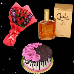 500gms of Assorted sweets + Yummy delicious round shape chocolate cake - 1kg + 25 mixed flower arrangement Note: 1.p...