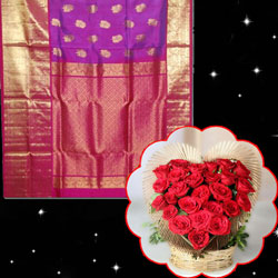 Exclusive Venkatagiri Pattu Saree - HSNM-16 + Beautiful Heart shape flower arrangement with 25 Red Roses. Note: D...