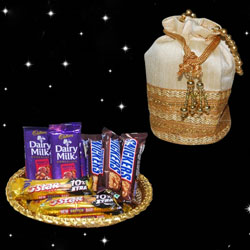 POTLI -11642 -001 Size:16cm*13cm + Dairy Milk Fruit and Nut chocolates - 3 bars + Snickers chocolates - 3 bars + 5Star ...