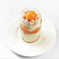 ITC Kakatiya Khubani Custard Saffron tinged apricot compote, custard cream and butter shortbread crumble Note: Deliv...