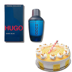 Hugo Boss / Dark Blue - Eau de Toilette 75 ml - for Men + Delicious Round shape Butterscotch cake - 1kg NOTE: Same-...